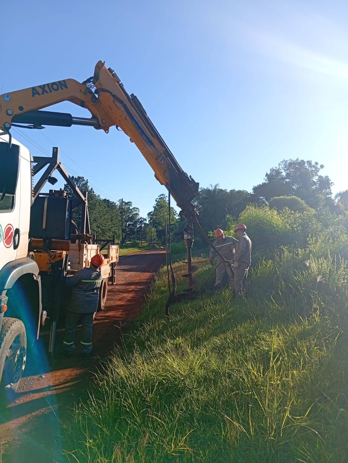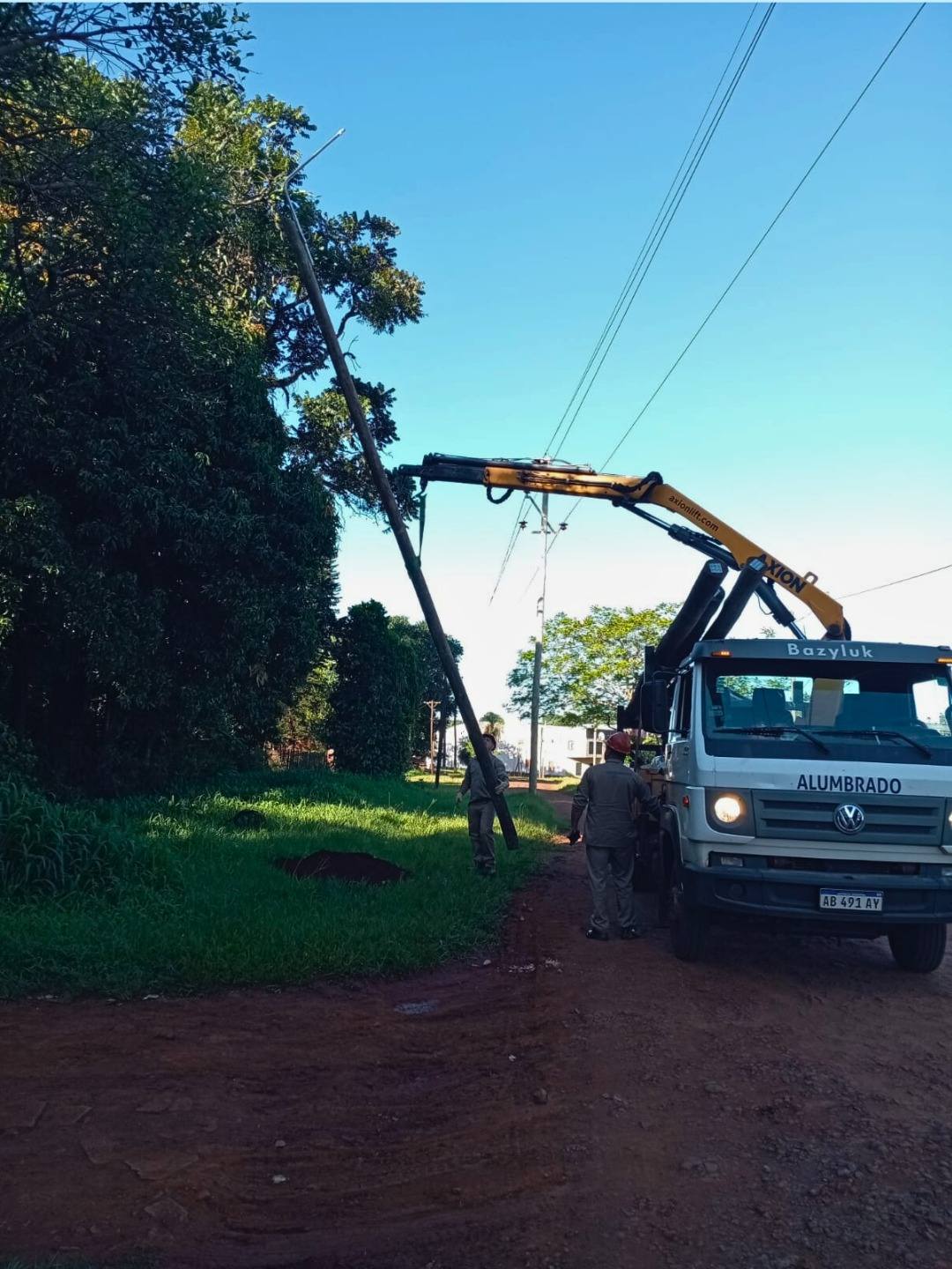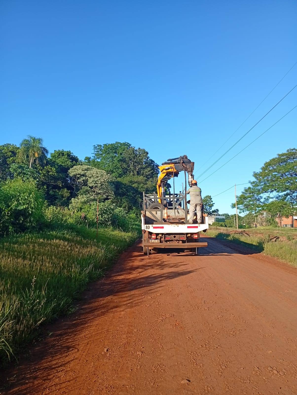 La Cooperativa sigue extendiendo la red de alumbrado público en Oberá, esta vez en calle Sendero de la Mujer detrás del Supermercado Austral.